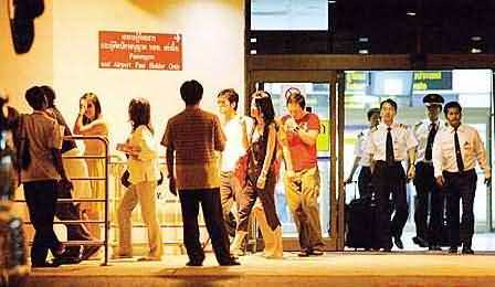 現場所見,王菲邊走邊把墨鏡移到頭上,神情疲累,一步出機場大門已急不及待煲煙提神,至于表情輕松的李亞鵬則全程戴上太陽眼鏡,同樣點起香煙抽起來,然后二人便站在街上等候尾隨友人推出行李車,其間王菲難掩倦意,頻頻打呵欠。眾人其后登上早已在場等候的車子,行李則存放在另一小型貨車上,一切打點妥當后,司機便駕車直駛Banyan Tree五星級酒店。