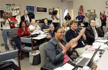 真是“起飛時難降也難”,美國愛德華茲空軍基地九日的黎明靜悄悄,當“發現號”航天飛機沖破大氣層的烈熾時,舉世矚目----但它終于在夜幕中閃著亮光,英雄般身負傷痕呼嘯而降......美國電視和網絡的現場畫面直播到這時,掌聲響起來。