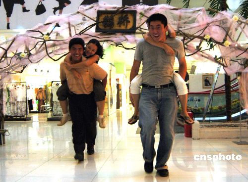 8月11日是“七七情人節(jié)”,在山東濰坊世紀(jì)泰華購物廣場,兩對(duì)情侶正在參加背妻比賽。近幾年來,“七七情人節(jié)”受到了越來越多的年輕人的喜愛。許多商家也抓住這一商機(jī),舉辦活動(dòng)吸引人氣,進(jìn)行促銷。作者:王志德