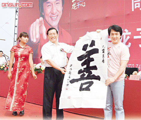中新網8月16日電 據香港媒體報道,成龍日前特地飛往濟南,并在下機后乘坐了四個多小時車程往棗莊,為該處名為“龍子心”的中學進行奠基儀式。當日,成龍一到即受到當地村民夾道歡迎,而現場吸引了上萬名群眾圍觀,最終要出動大批公安隔開人群及維持秩序,成龍才可順利主持奠基儀式。