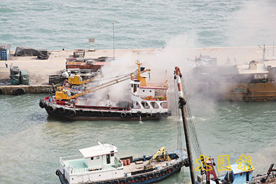 及至周一晨9時許,4人突然發(fā)現(xiàn)船倉冒濃煙,張柏雄一馬當(dāng)先跳入船艙救火,船主張×友則繼續(xù)控制船只,并以手提電話報(bào)警求助,由于沒有網(wǎng)絡(luò)關(guān)系,欲救無從、又無法報(bào)警,張×友遂將躉船駛往3海里外的西區(qū)貨物起卸區(qū)求救。