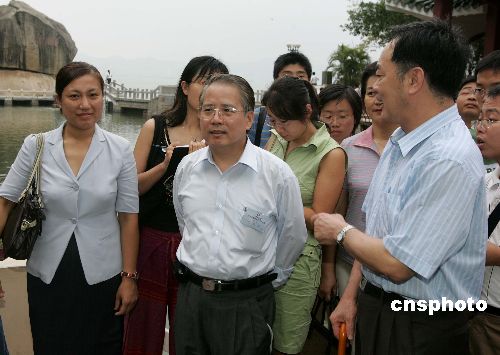由中國國民黨臺中市黨部主任委員沐桂新率領的臺中市黨部訪問團八月二十五日下午在廈門參觀訪問。圖為沐桂新等參觀著名風景區鼓浪嶼。作者:毛建軍