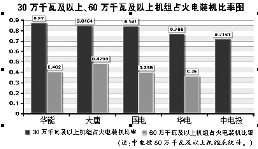 今年1月初,來自工業和信息化部的信息顯示,2009年全年關停小火電機組容量2617萬千瓦。去年電力行業的一件大事是“十一五”關停小火電的任務提前完成,小火電關停容量達到6006萬千瓦,30萬千瓦及以上火電機組占到了全部火電機組容量的64.46%。2007年,為實現“十一五”規劃綱要提出的單位國內生產總值能源消耗降低和主要污染物排放總量減少的目標,國家發改委頒布了《關于加快關停小火電機組的若干意見》的文件,對小火電關停做出了具體部署。本報對“十一五”以來華能、大唐、國電、華電和中電投等五大發電集團關停小火電的情況進行了統計,并對由此帶來的火電結構變化進行了調查,現將結果予以刊發,以饗讀者。