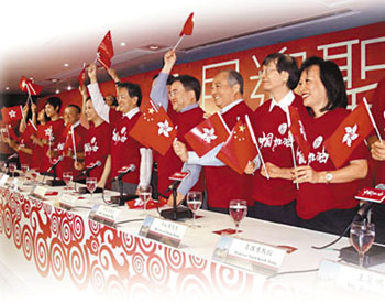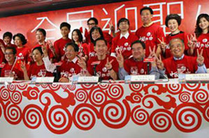 由商界、體育界、演藝界和專業界組成的民間團體“全民迎圣火委員會”發起一系列活動,鼓動全民眾志成城迎接圣火。(圖片來源:文匯報)
