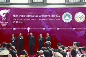何振梁在儀式上表示,象征光明、和平、友誼的奧運(yùn)圣火經(jīng)歷了30多天的全球之旅,從香港來到澳門。人們見證著“祥云”火炬在澳門這一美麗城市繼續(xù)“和諧之旅”,將奧林匹克夢(mèng)想傳遞每一居民。