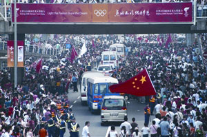奧運(yùn)圣火來到中西文化交融的澳門,并將由此進(jìn)入祖國(guó)內(nèi)地,奧林匹克的精神將會(huì)在中華大地廣泛傳揚(yáng),祖國(guó)開放進(jìn)步的新貌也將在全球充分展現(xiàn)。澳門居民衷心祝愿祖國(guó)人民和世界各國(guó)人民成功弘揚(yáng)奧林匹克精神,祝愿各國(guó)運(yùn)動(dòng)員和人民共享這次相互了解、和諧交流的文化體育盛典,祝愿北京成功舉辦一屆有特色、高水平的奧運(yùn)會(huì)。