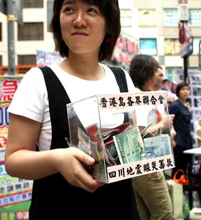 昨天多個香港企業都紛紛捐款和進行募捐活動,無論大型商場、屋村和街頭都可以看到志愿團體的捐款箱和義工向市民募捐。
