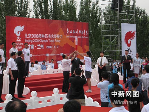 今天上午8時,北京2008年奧運會火炬接力蘭州演練點火儀式在中山橋廣場舉行,雖然只是全程的實戰演練,蘭州人民卻熱情高漲、統一著裝,處處可見五星紅旗和奧運的旗幟在空中飄揚,整個金城被濃厚的奧運氣息籠罩著。