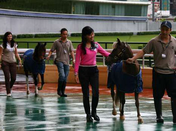 中新網7月11日電 據香港大公報報道,為慶祝香港協辦北京奧運馬術及殘奧馬術比賽,美國雪特蘭小馬策騎協會特贈送兩匹雪特蘭小馬予香港馬術總會,10日聯同香港賽馬會在跑馬地馬場亮相圈舉行交接儀式。