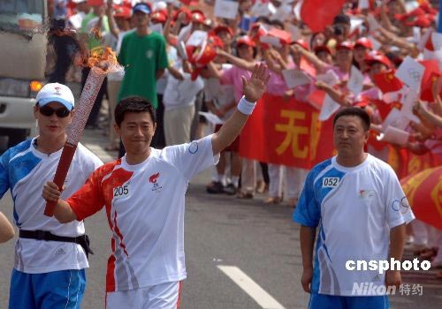 圖:影星夏雨在青島傳遞奧運火炬