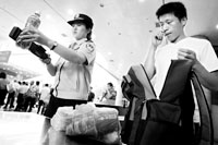 即日起,到北京各火車站乘坐火車的旅客,都須接受鐵路警方進行的液體搜危檢查。昨天上午,記者從鐵路警方獲悉,為了使北京站、北京西站、北京南站、北京北站四大火車站的安檢措施更加嚴(yán)密,警方開始對這里的安檢工作進一步升級,實施24小時安檢查危工作,對進站旅客攜帶的行李物品件件進行檢查。