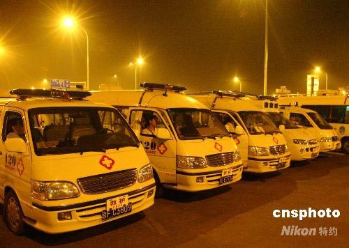 為防止意外發(fā)生,有大批的公安和醫(yī)護人員在現(xiàn)場隨時待命。 中新社發(fā) 富田 攝