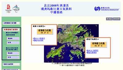 公眾人士可以從天文臺的馬術(shù)比賽天氣網(wǎng)站獲得最新比賽場地的詳細天氣預測、天氣警告、實時天氣狀況及環(huán)境保護署提供的賽場區(qū)域空氣污染指數(shù)。
