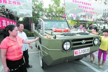 一些市民第一次見(jiàn)到水陸兩用車格外新奇,圍著車子摸摸看看。