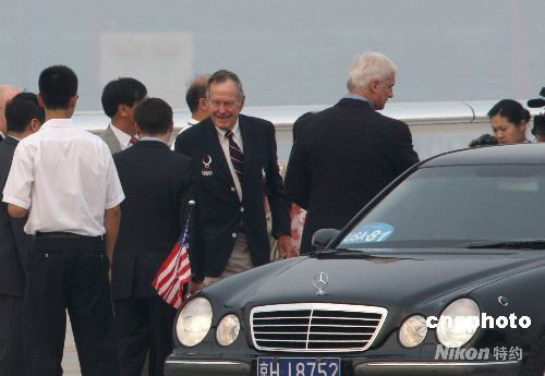 2008年8月6日16點57分,美國前總統老布什到達北京首都機場,前來參加第29屆北京奧運會開幕式及相關活動。 中新社發 北有宋喬 攝