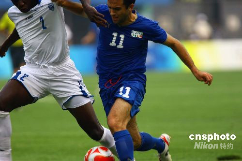 8月7日,北京奧運(yùn)男足小組賽開賽,洪都拉斯隊(duì)與意大利隊(duì)的比賽在秦皇島奧體中心舉行,最終意大利隊(duì)3:0戰(zhàn)勝洪都拉斯隊(duì)。中新社發(fā) 劉新 攝