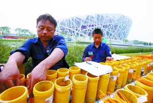 按標(biāo)準(zhǔn),用于鳥巢燃放的煙花,抽檢率高達50%,即每兩個成品出廠前,其中一個必須當(dāng)場試放。試放成品過關(guān),另一成品才能裝箱。(記者 王姝)