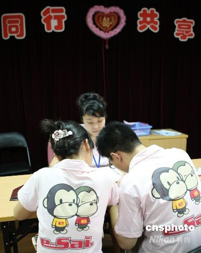 8月8日北京奧運(yùn)會(huì)開(kāi)幕當(dāng)天,上海迎來(lái)結(jié)婚潮,眾多新人為趕“雙喜臨門(mén)”,一早就來(lái)到民政局排隊(duì)登記結(jié)婚。 中新社發(fā) 湯彥俊 攝