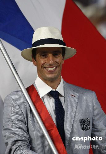 圖為法國奧運代表團的旗手、兩屆奧運皮劃艇激流回旋項目的金牌得主托尼·埃斯蓋當。中新社發 杜洋 攝