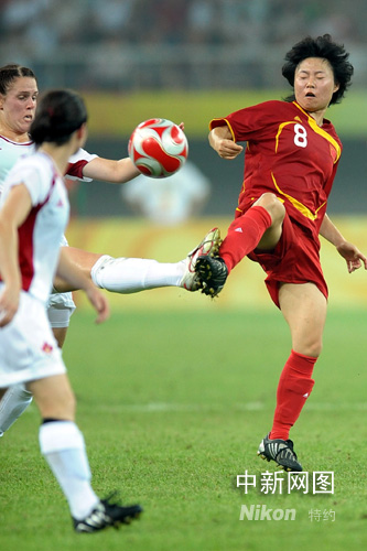 圖:中加奧運(yùn)女足賽拼搶激烈 動(dòng)作危險(xiǎn)
