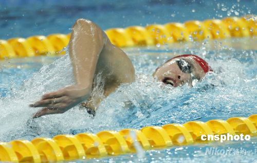 圖:中國選手張琳在男子400米自由泳預賽中