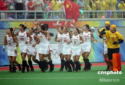 8月10日,中國女曲在奧運會女子曲棍球小組賽首場比賽中以3:0戰勝西班牙隊。圖為中國隊在進攻中。 中新社發 武仲林 攝