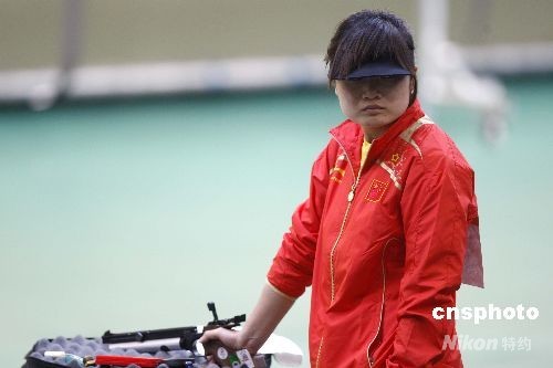 8月10日,在北京奧運會女子10米氣手槍決賽中,中國選手郭文珺奪得冠軍,并以492.3環(huán)的成績打破奧運會紀錄。這是中國軍團在本屆奧運會上獲得的第三塊金牌。圖為郭文珺在比賽中。中新社發(fā) 盛佳鵬 攝