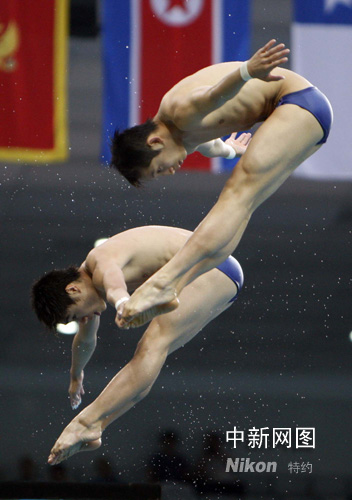 11日下午,北京奧運(yùn)會(huì)男子10米雙人跳臺(tái)決賽在國(guó)家游泳中心開始,中國(guó)代表團(tuán)派出“月亮組合”林躍、火亮角逐金牌。這也是這對(duì)組合首次亮相奧運(yùn)。
