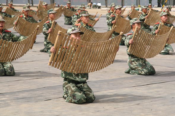 “我們前四個八拍動作取名為“禮之用,和為貴”,一開場就要把古代文人的氣質(zhì)淋漓盡致地刻畫出來,要高傲,要自然,要放松,所有軍人姿態(tài)都要改過來……”第一天,導(dǎo)演們的一串“連環(huán)炮”就讓激情昂揚的參演官兵傻了眼。
