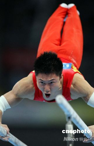 8月12日,北京奧運(yùn)會(huì)體操男子團(tuán)體決賽在國(guó)家體育館展開,中國(guó)男子體操隊(duì)繼悉尼奧運(yùn)之后再次登頂,以286.125 分獲得金牌,有中國(guó)“雙杠王”之稱的李小鵬在雙杠比賽中獲高分。中國(guó)體操名將李小鵬也超越李寧,成為獲得世界冠軍最多的中國(guó)體操選手。李寧的世界大賽金牌為14枚,李小鵬達(dá)到15枚。 中新社發(fā) 任晨鳴 攝