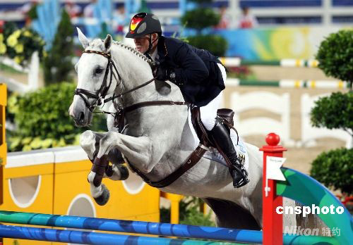 圖為獲得奧運馬術三項賽團體賽金牌的德國選手欣里希·彼特·羅邁克 。