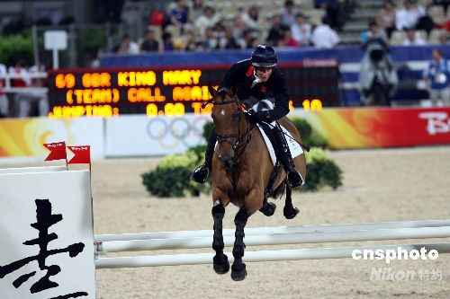 圖為獲得奧運馬術三項賽團體賽銅牌的英國選手瑪麗·金飛躍障礙。