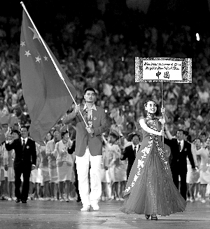 開幕式上,于佩舉牌引導中國代表團入場。Paul Gilham攝