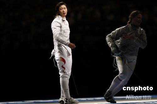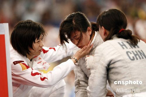 8月14日,北京奧運會女子佩劍團體冠亞軍決賽在北京國際會議中心擊劍館舉行,中國與烏克蘭爭奪冠軍。最后中國隊慘遭逆轉,以一分之差痛失金牌獲得第二名。 中新社發 盛佳鵬 攝