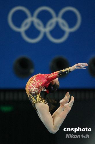 8月15日,中國選手楊伊林在北京奧運會體操女子個人全能決賽中,以62.650分獲得季軍,為中國在體操項目上增添一枚銅牌。 中新社發 武仲林 攝