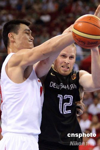 最后一節(jié)開始后,姚明連得4分,中國(guó)隊(duì)51-39領(lǐng)先。王仕鵬連投帶罰,中國(guó)隊(duì)繼續(xù)擴(kuò)大優(yōu)勢(shì)。關(guān)鍵時(shí)刻,諾維茨基連得5分,幫本隊(duì)縮小差距。最后幾分鐘,中國(guó)隊(duì)命中率下降,德國(guó)隊(duì)趁機(jī)迫近比分。諾維茨基罰球命中后,比分變?yōu)?2-54。姚明中投得手,56-52領(lǐng)先4分。諾維茨基馬上命中3分,將分差縮小為僅剩一分。距結(jié)束28秒時(shí),易建聯(lián)命中2分,58-55。中國(guó)隊(duì)最終擊敗德國(guó),鎖定八強(qiáng)席位。