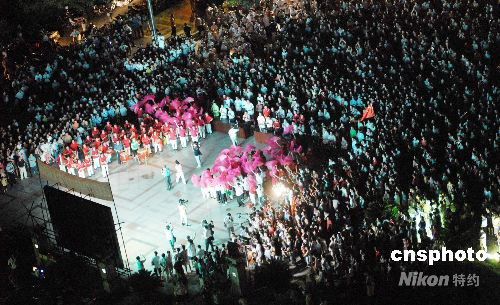 8月17日晚,福建龍巖市上杭縣人民廣場上人山人海,在當(dāng)日舉行的北京奧運(yùn)羽毛球男單決賽中,世界排名第一的“超級丹”林丹終于完勝馬來西亞名將李宗偉奪冠,圓了自己的奧運(yùn)金牌夢。中新社發(fā) 福建分社 攝