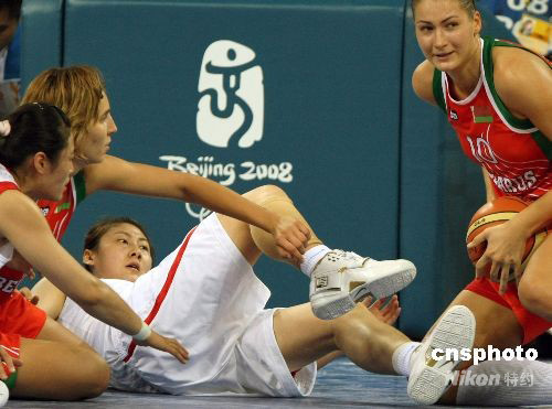 8月19日下午,北京奧運會女子籃球四分之一淘汰賽在北京五棵松籃球館舉行,中國女籃以77比62擊敗白俄羅斯率先進入前四強。這是16年之后中國女籃再次闖進奧運四強。中新社發(fā) 任晨鳴 攝