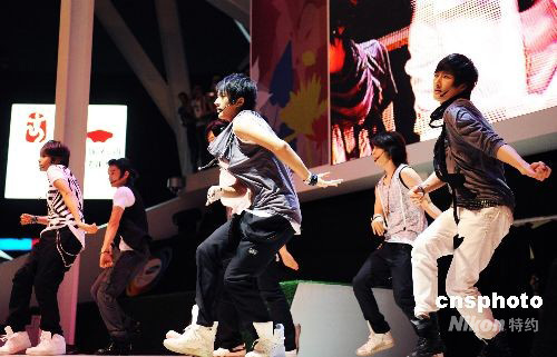 8月20日晚,亞洲當(dāng)紅組合“Super junior M”在奧林匹克公園激情獻(xiàn)唱。該組合是由韓國人和中國人組成的男子組合。中新社發(fā) 王東明 攝