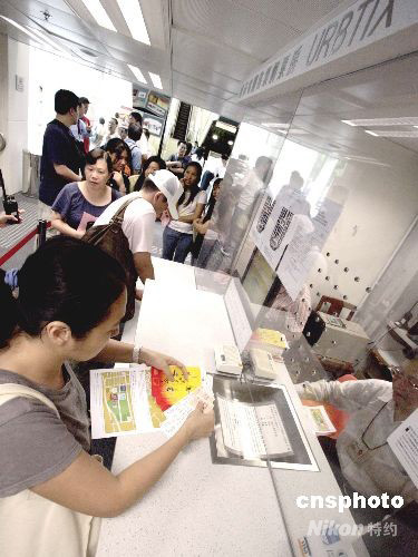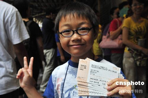 八月二十一日,中國奧運(yùn)金牌精英訪港表演門票開始發(fā)售,香港市民通宵在售票點(diǎn)排隊(duì)購票。入場票在今早十時(shí)開始發(fā)售,圖為市民踴躍購買。