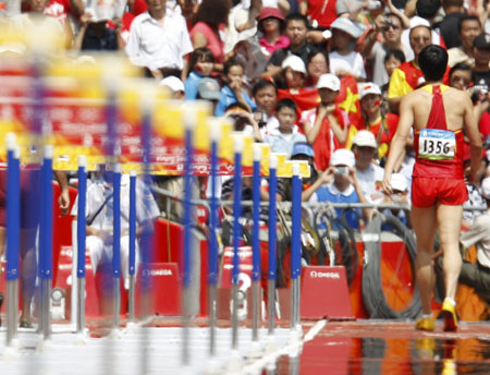 九萬名因劉翔之名而來觀戰的現場觀眾幾乎都不敢相信自己的眼睛,奧運志愿者李晶正是這九萬分之一,“他跪在地上,輕拍著右腳裸。過了一會兒,他一瘸一拐地走到起跑線附近,右腳根沒有著地!