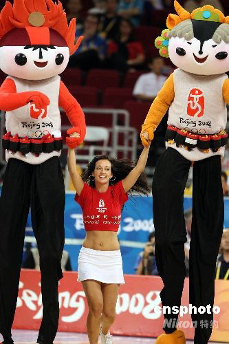 趣圖:福娃踩高蹺助陣奧運男籃半決賽