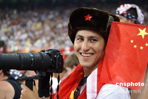 8月23日晚,在國家體育場“鳥巢”的觀眾席上,一位伊朗小伙子頭戴“雷鋒”帽,一邊拍照片,一邊狂熱地為比賽選手助威。當現(xiàn)場有觀眾問他姓名時,他微笑著用中文回答“雷鋒”。中新社發(fā) 馬小剛 攝