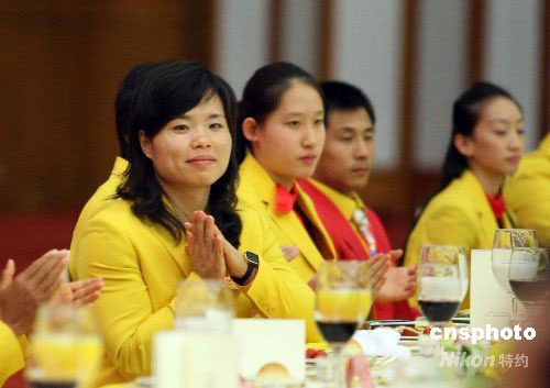 圖:陳艷青參加北京奧運中國體育代表團慶祝宴會