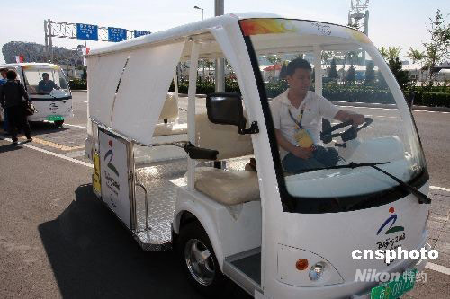 9月2日,一批新型的無障礙電瓶車北京奧運(yùn)村“上崗”。據(jù)悉,從8月10日起,50輛無障礙電瓶車在奧林匹克公園公共區(qū)“上崗”,并將使用到殘奧會結(jié)束。殘奧會期間,老年人、殘疾人到“鳥巢”、“水立方”等場館觀看比賽,可不必?fù)?dān)心行動不便帶來的問題。每輛電瓶車可提供輪椅服務(wù),同時(shí)配備一名觀眾服務(wù)志愿者,全程為行動不便的觀眾提供服務(wù)。中新社發(fā) 鄭雄增 攝