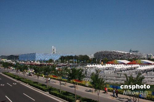 9月2日,北京依然晴空氣朗,游客樂游奧運村。奧運會期間,“鳥巢”、“水立方”等北京奧運場館給全世界留下深刻印象。“十一”黃金周期間,奧運場館將最大限度地保留奧運賽事時的場景和設施,向北京市民和各地游客開放,供人們參觀游覽。 中新社發 追影 攝