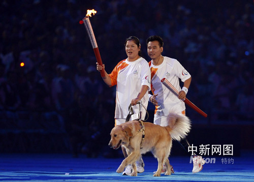 北京殘奧會開幕式上平亞麗帶導盲犬傳遞火炬