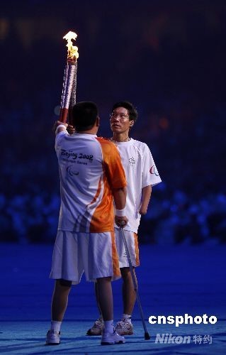 組圖:北京殘奧會開幕式上的火炬傳遞