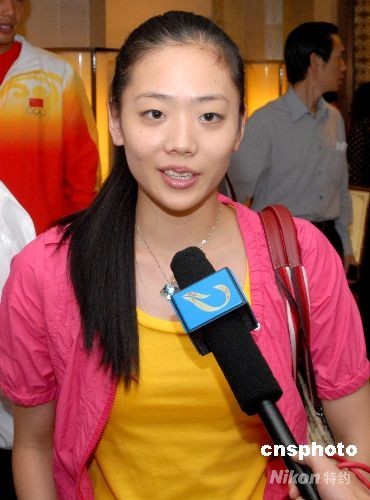 2008年9月6日,湖北省奧運軍團載譽歸來。在湖北省委、省政府為奧運健兒召開表彰大會的間隙里,世界體操名將楊威的妻子楊云,成了現場記者的“焦點人物”。雖然楊威和楊云已經登記結婚,但為了備戰北京奧運會推遲了婚期,“臥薪嘗膽”四年的楊威一舉獲得男子團體和個人全能金牌。中新社發 楚天行 攝