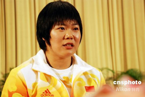 9月11日,第29屆奧運會舉重女子69公斤級冠軍劉春紅在報告會上發言。中新社發 楊慧峰 攝
